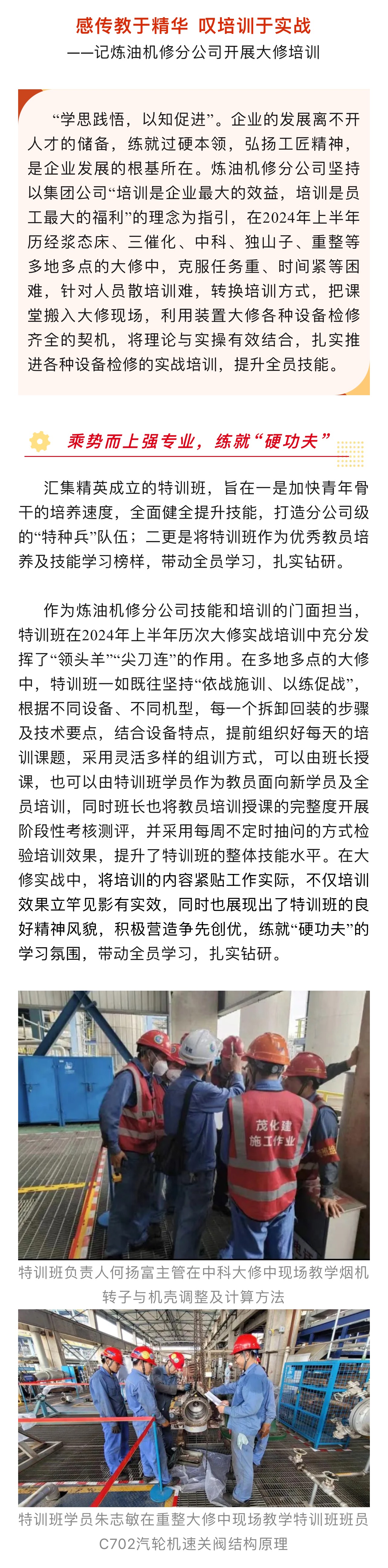 記煉油機(jī)修分公司開展大修培訓(xùn)