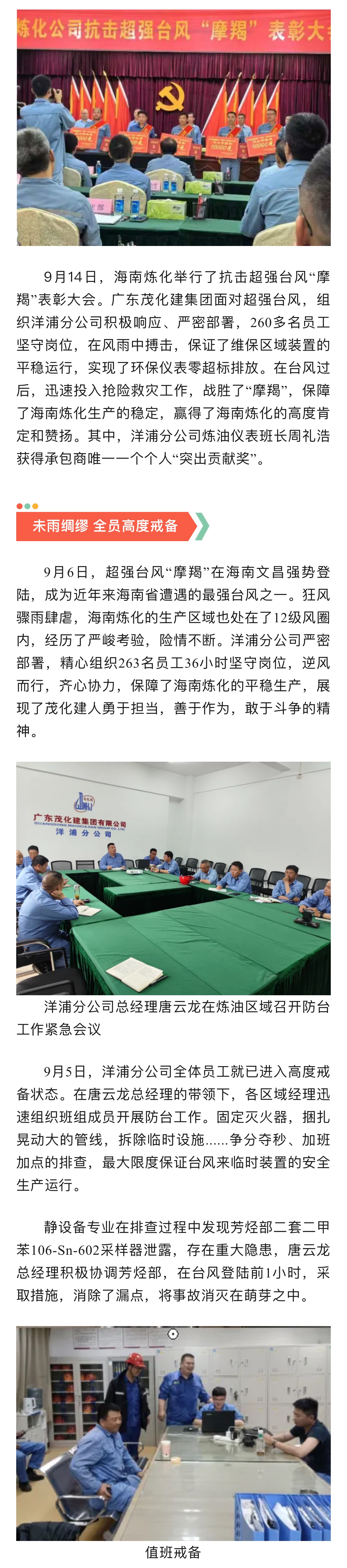 茂化建洋浦分公司抗擊超強(qiáng)臺(tái)風(fēng)"摩羯”獲業(yè)主高度表揚(yáng)
