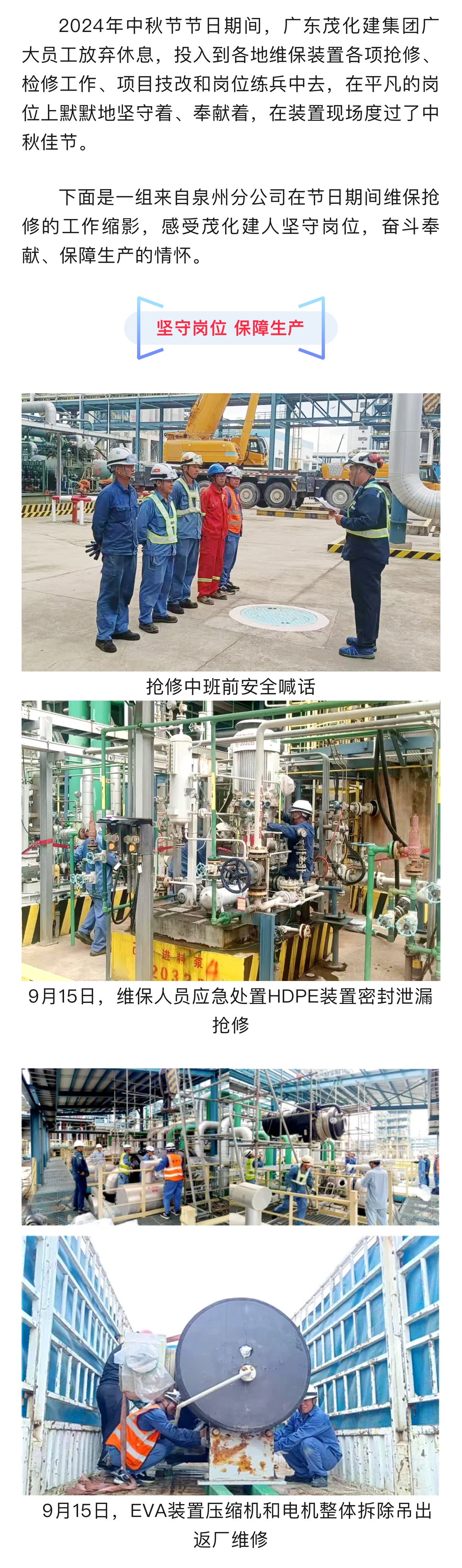 組圖|裝置護(hù)航 泉州分公司中秋節(jié)日維保搶修忙