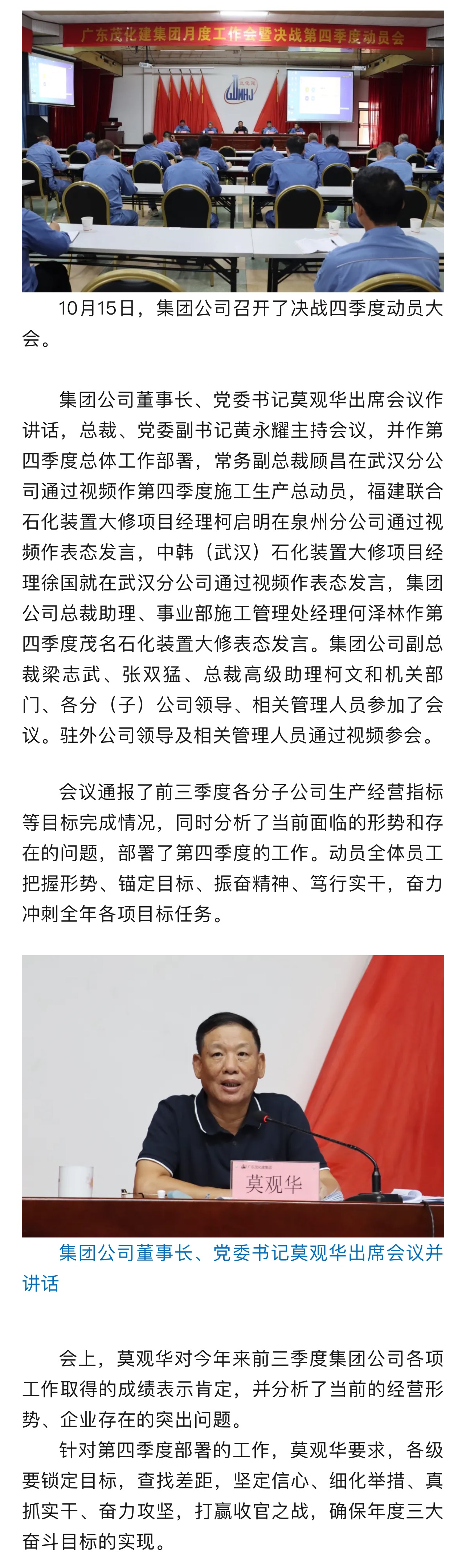 決戰(zhàn)決勝四季度 沖刺全年奮斗目標(biāo)——集團(tuán)公司召開決戰(zhàn)第四季度動員大會