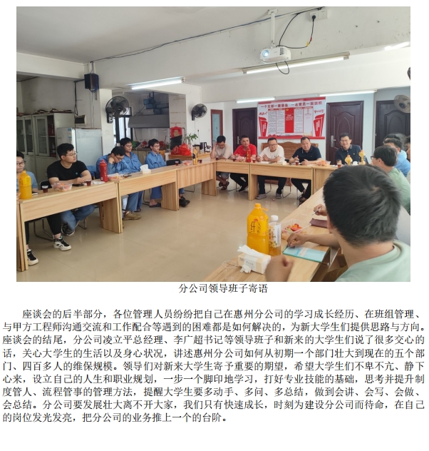 惠州分公司舉行大學(xué)生員工座談會(huì)