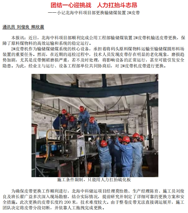記北海中科項(xiàng)目部更換輸儲(chǔ)煤裝置 2#皮帶