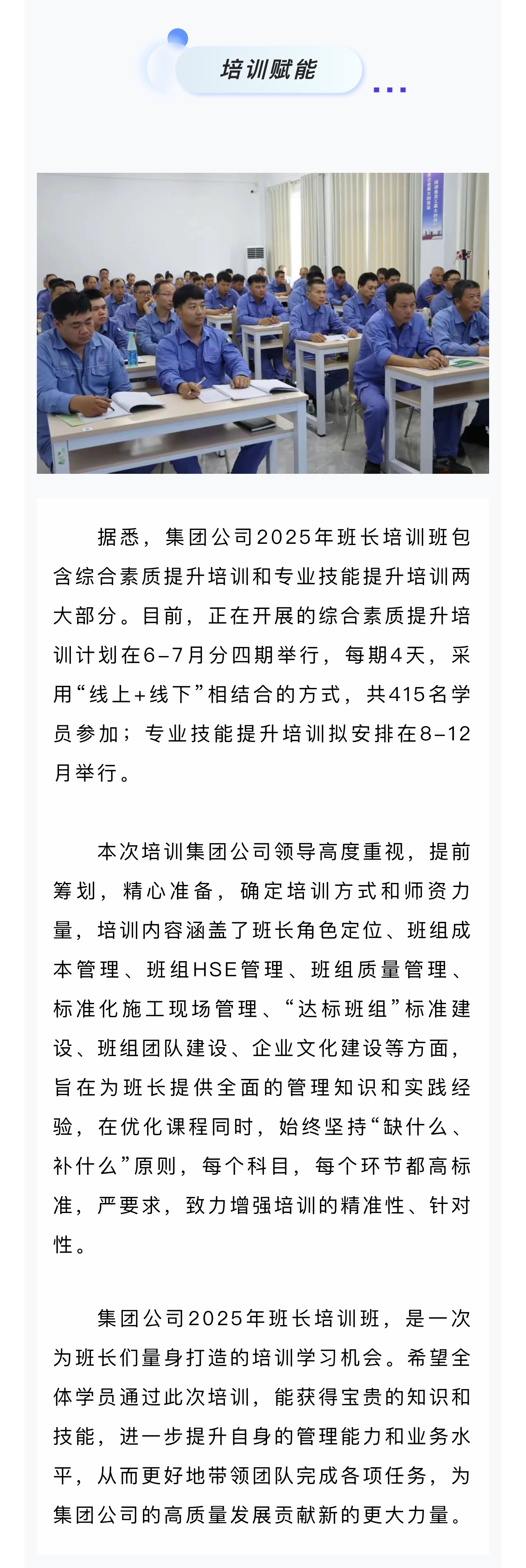 集團(tuán)公司2025年第一期班長培訓(xùn)班順利開班