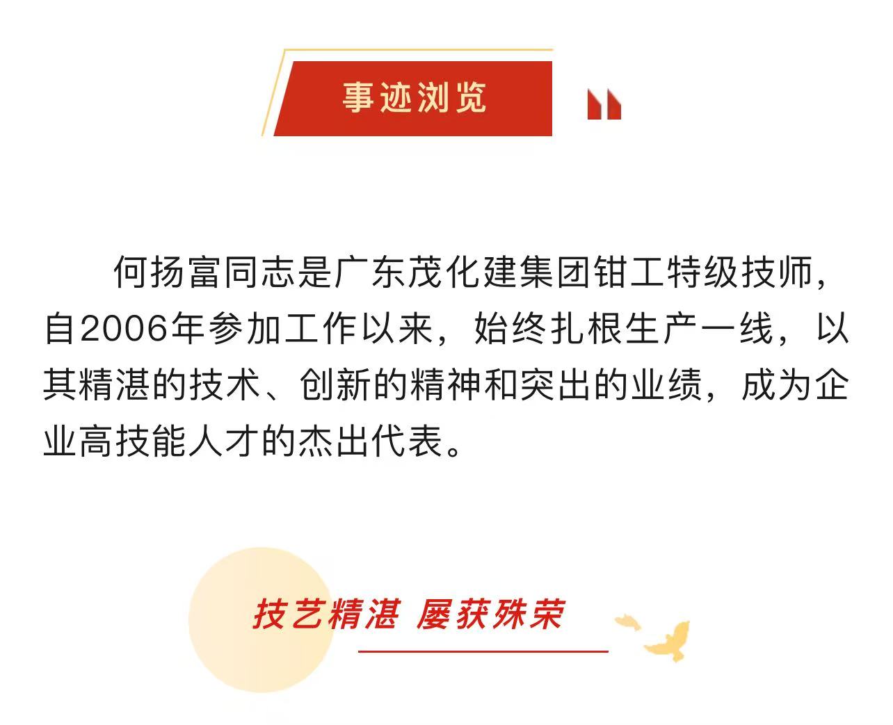 喜報 | 何揚富被授予第五屆“南粵技術能手獎”