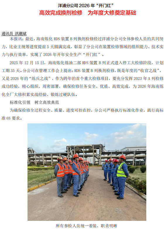 洋浦分公司高效完成換劑檢修 為年度大修奠定基礎(chǔ)
